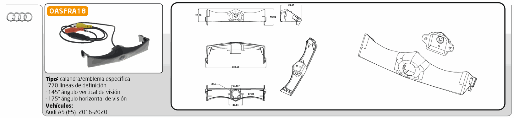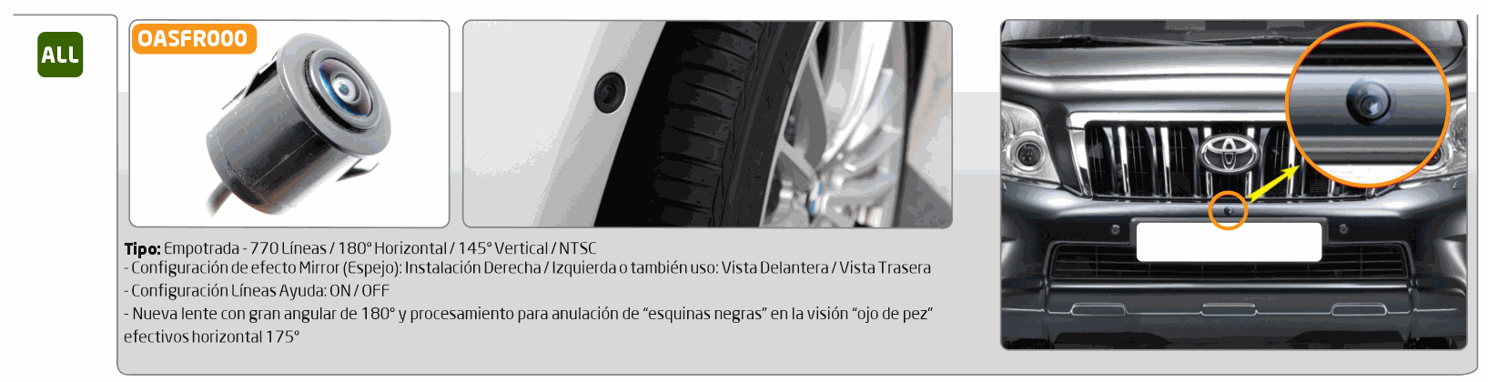 3. CÁMARA VISIÓN FRONTAL: escoger según modelo del coche y medidas.